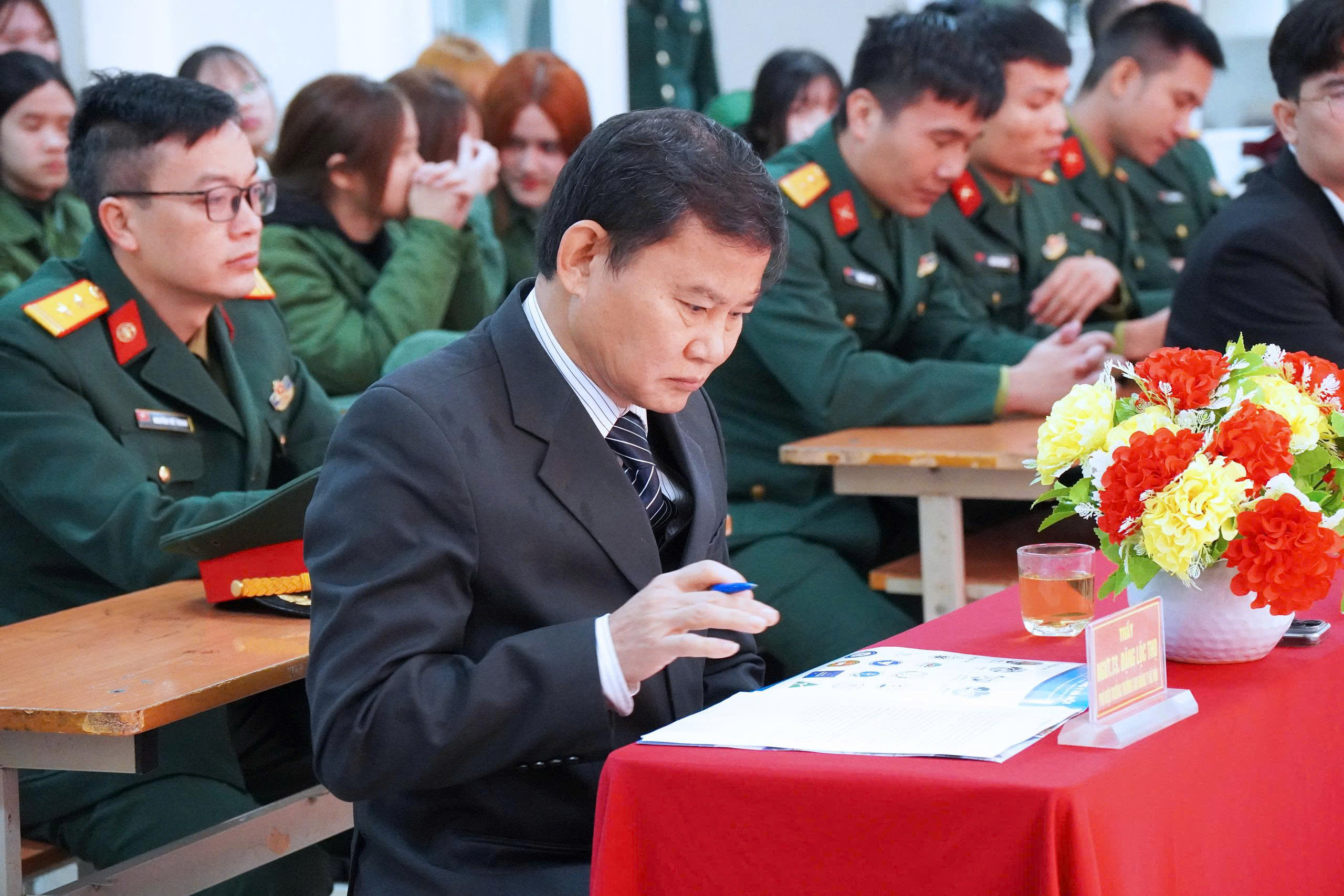 Trong khuôn khổ chương trình, các thầy phụ trách đã phổ biến đầy đủ, rõ ràng các quy định, nội dung, nề nếp học tập – sinh hoạt tại khu quân sự, giúp sinh viên chủ động thích nghi và chấp hành nghiêm túc kỷ luật trong suốt thời gian học tập. Tiếp nối chương trình, đại diện sinh viên đã phát biểu, thể hiện tinh thần quyết tâm học tập nghiêm túc, rèn luyện tốt và chấp hành đầy đủ các nội quy, quy định của đơn vị huấn luyện.