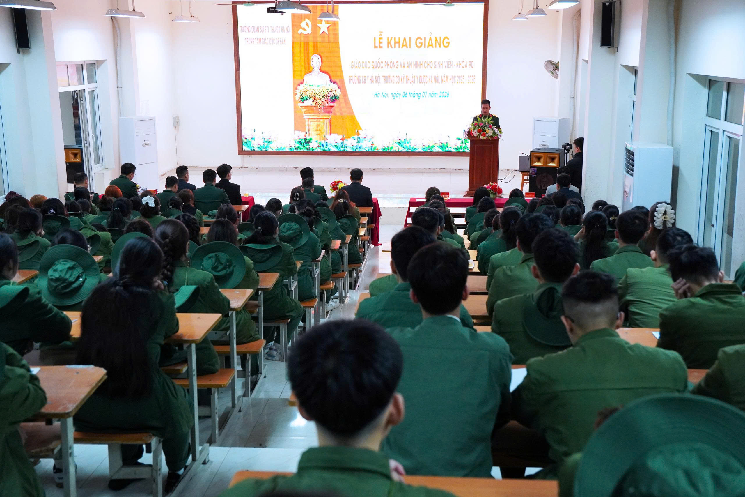 Sáng 06/01/2026, tại khu huấn luyện quân sự, Trường Cao đẳng Y Hà Nội – Cơ sở Tây Mỗ đã long trọng tổ chức Lễ Khai giảng kỳ học Giáo dục Quốc phòng – An ninh trong không khí trang nghiêm, nghiêm túc và đầy khí thế. Đây là hoạt động học tập có ý nghĩa quan trọng, góp phần bồi dưỡng bản lĩnh chính trị, ý thức kỷ luật và tinh thần trách nhiệm cho sinh viên HMC Tây Mỗ.