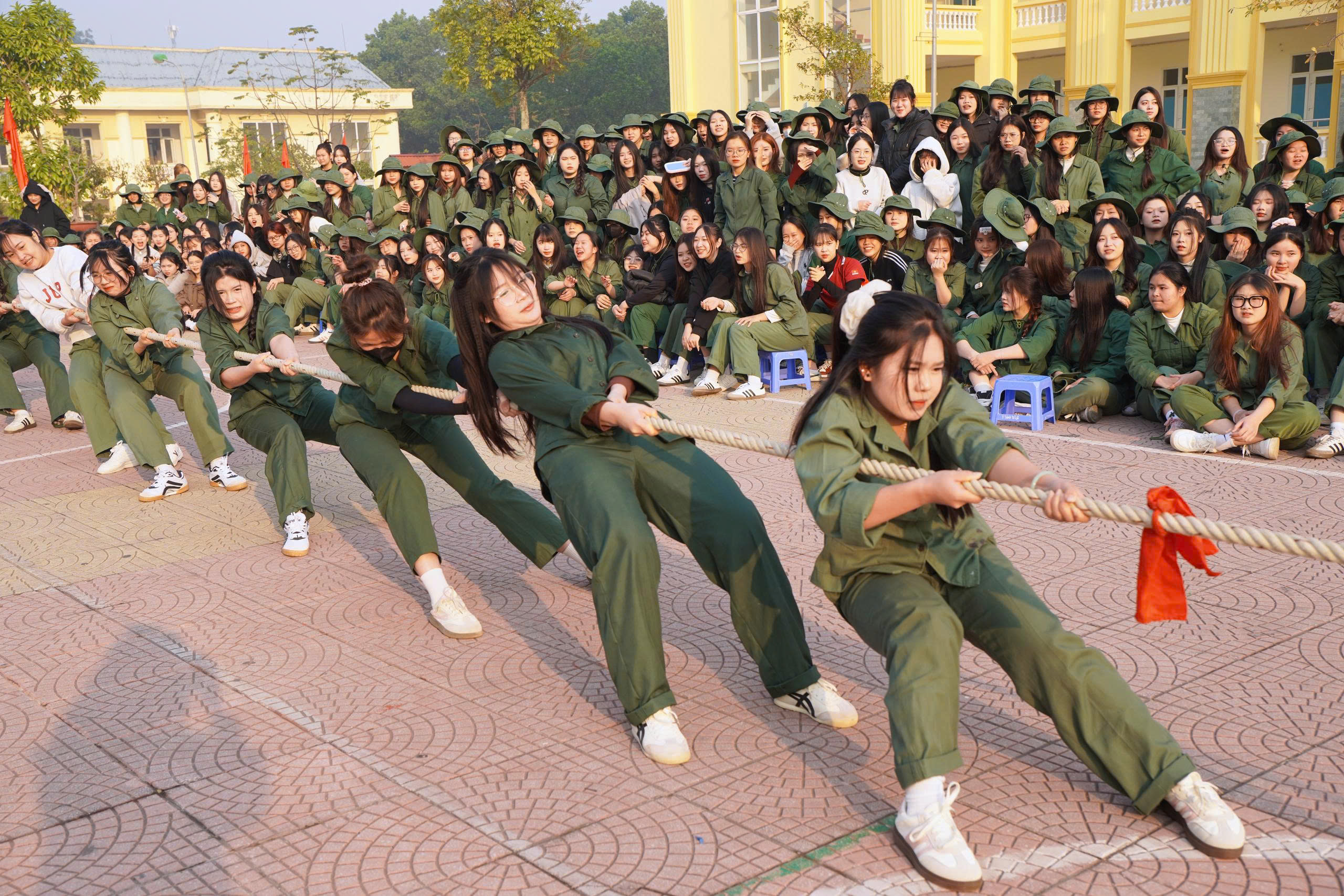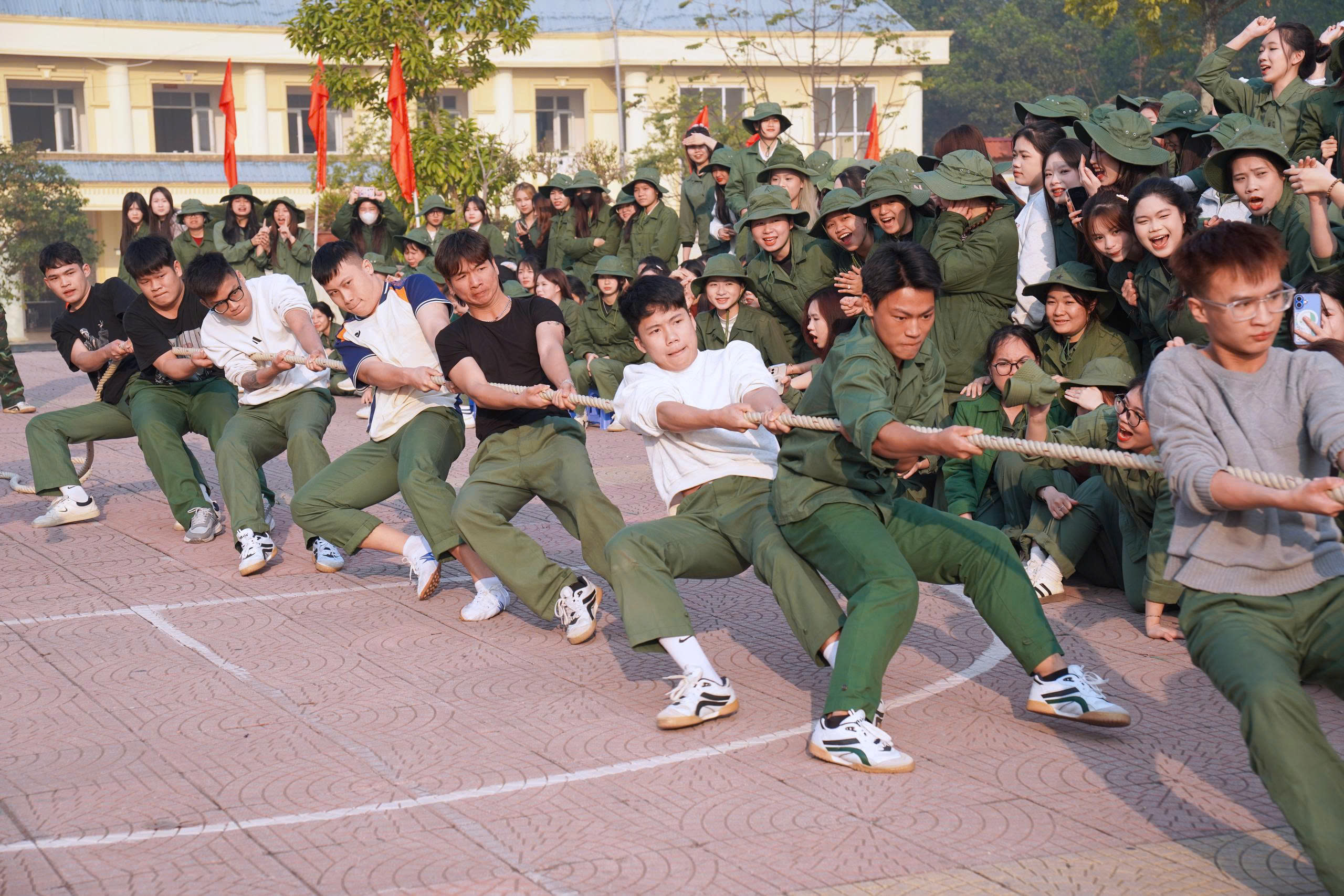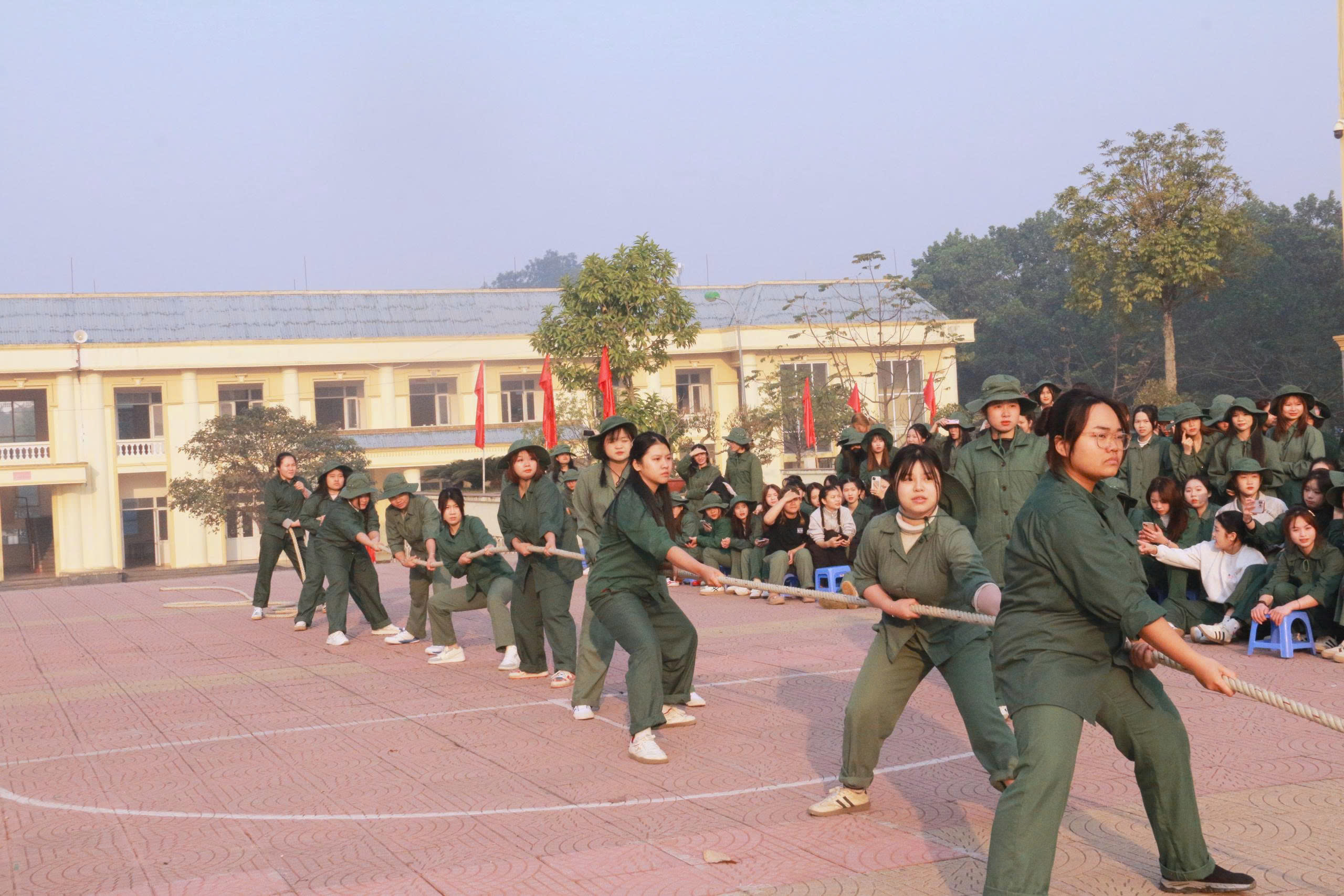 Trong không khí hào hứng và quyết tâm, các nội dung thi đấu diễn ra sôi nổi, thu hút sự tham gia nhiệt tình của đông đảo sinh viên. Nổi bật trong đó là các môn kéo co và bóng chuyền, mang đến nhiều cảm xúc và dấu ấn khó quên.